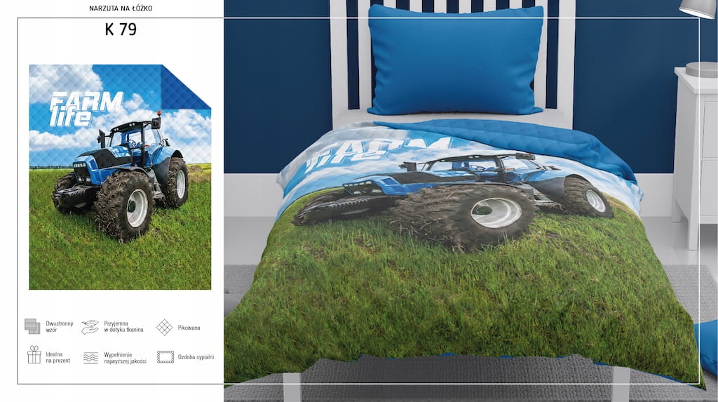 NARZUTA na łóżko PIKOWANA TRAKTOR 170X210 cm