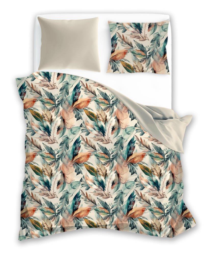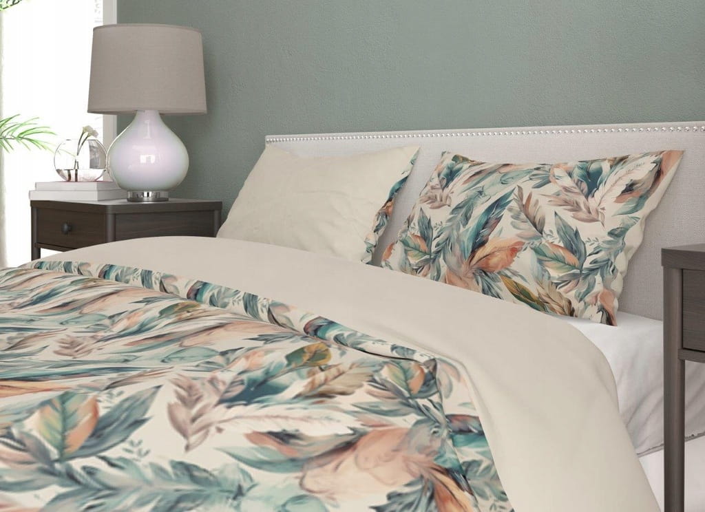 POŚCIEL bawełniana LIŚCIE rośliny 220x200 + 2x 70x80 cm komplet 3 częściowy