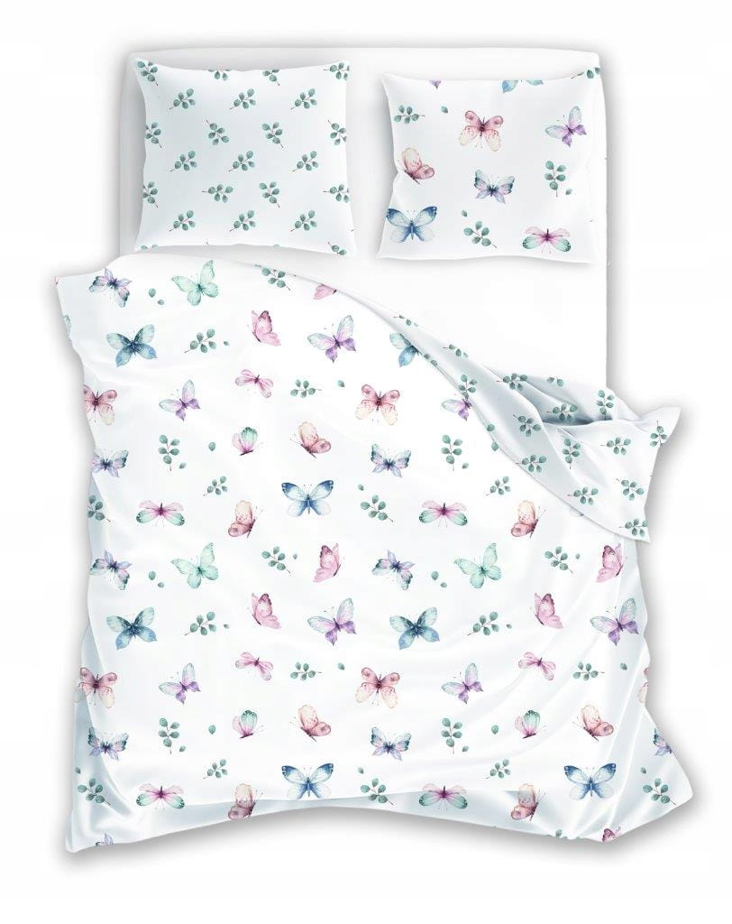 POŚCIEL bawełniana MOTYLE EUKALIPTUS 220x200 + 2x 70x80 komplet 3 częściowy