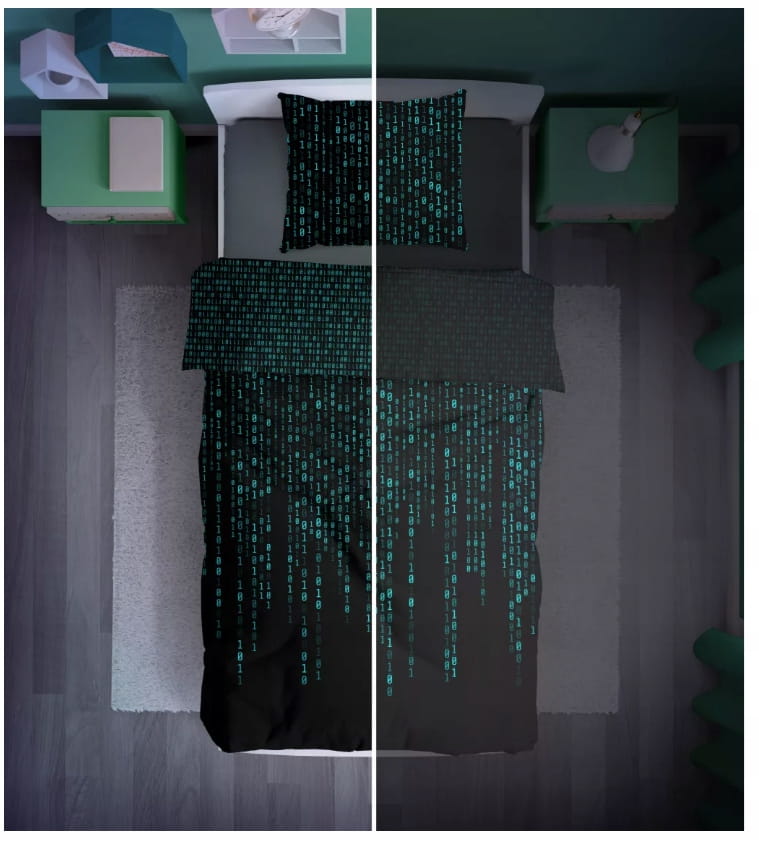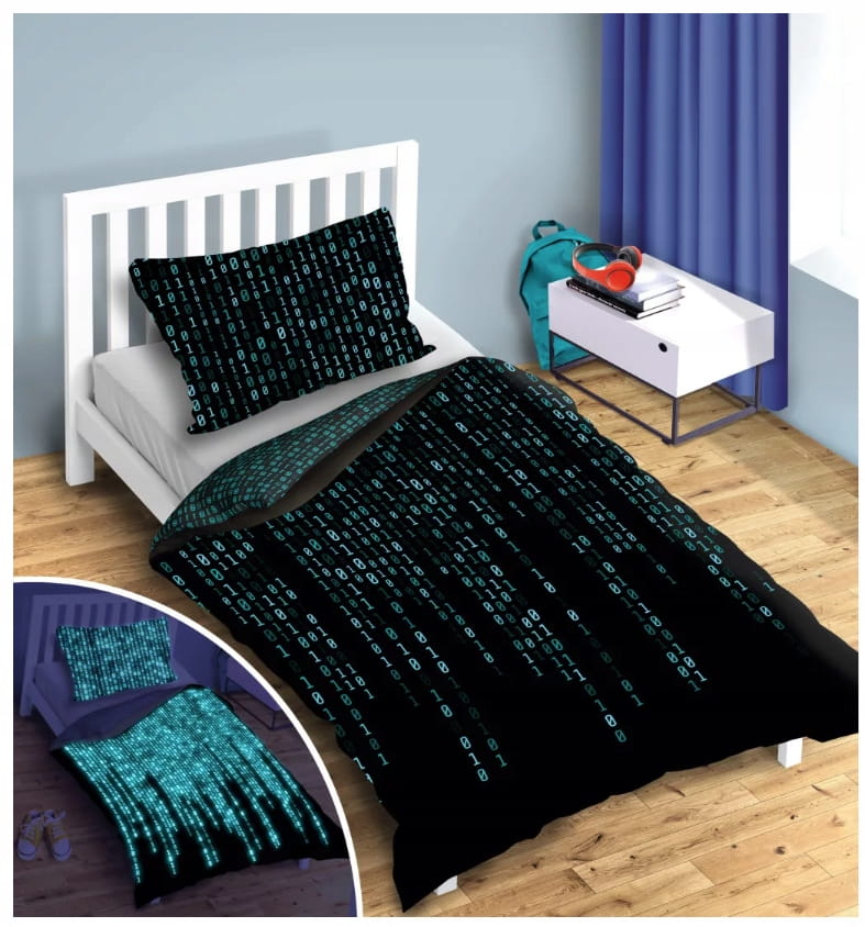 POŚCIEL bawełniana Matrix Nauka Technologia 160x200 cm ŚWIECĄCA