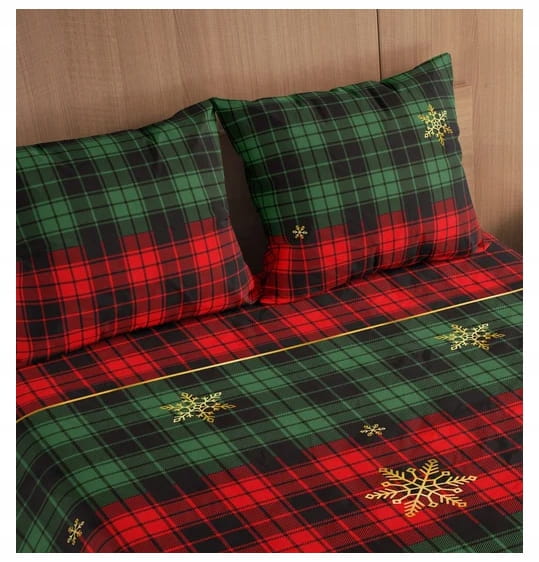 POŚCIEL bawełniana ŚWIĄTECZNA 140x200 + 70x90 kratka śnieżynki gwiazdki