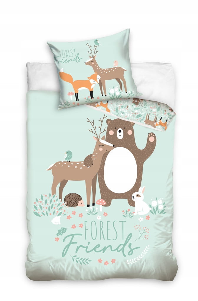 POŚCIEL bawełniana ŚWIĄTECZNA 140x200 cm ZWIERZĄTKA LAS