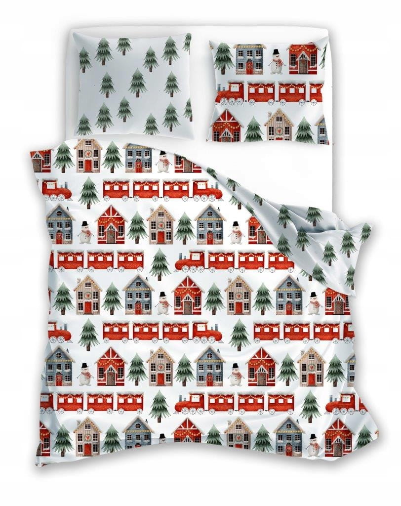 POŚCIEL bawełniana ŚWIĄTECZNA DOMKI 140x200 + 70x90 komplet 2 częściowy