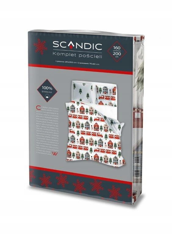 POŚCIEL bawełniana ŚWIĄTECZNA DOMKI 160x200 2x 70x80 komplet 3 częściowy