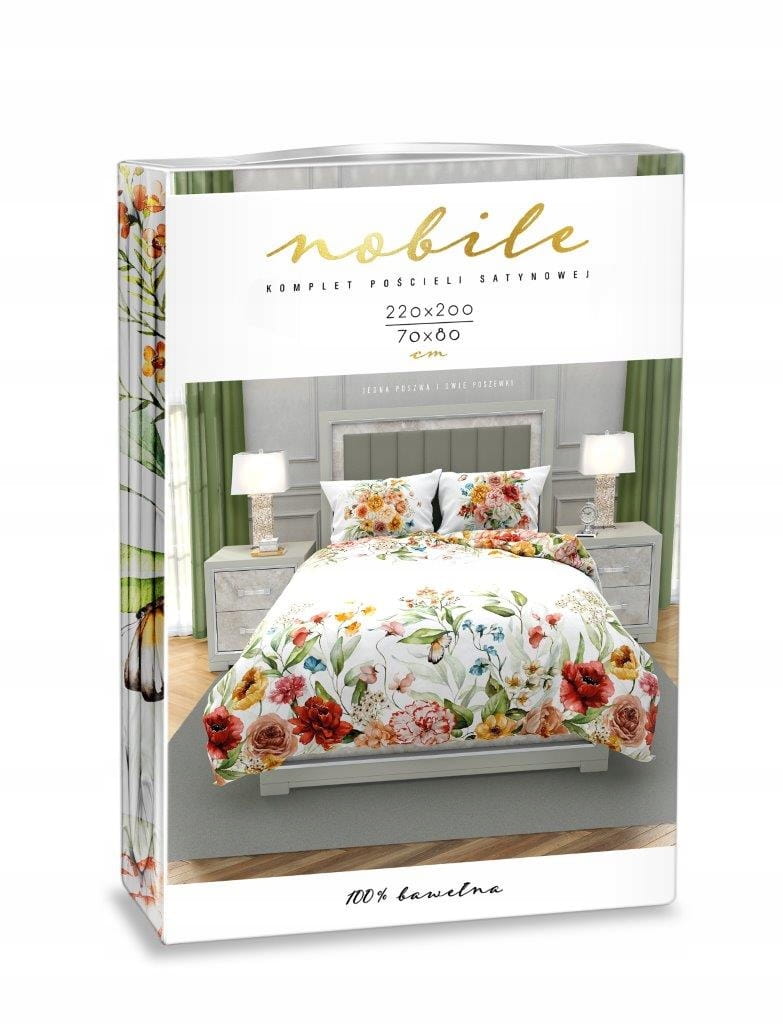 Pościel satynowa luksusowa 220x200 + 2x 70x80 cm Nobile 100% bawełna